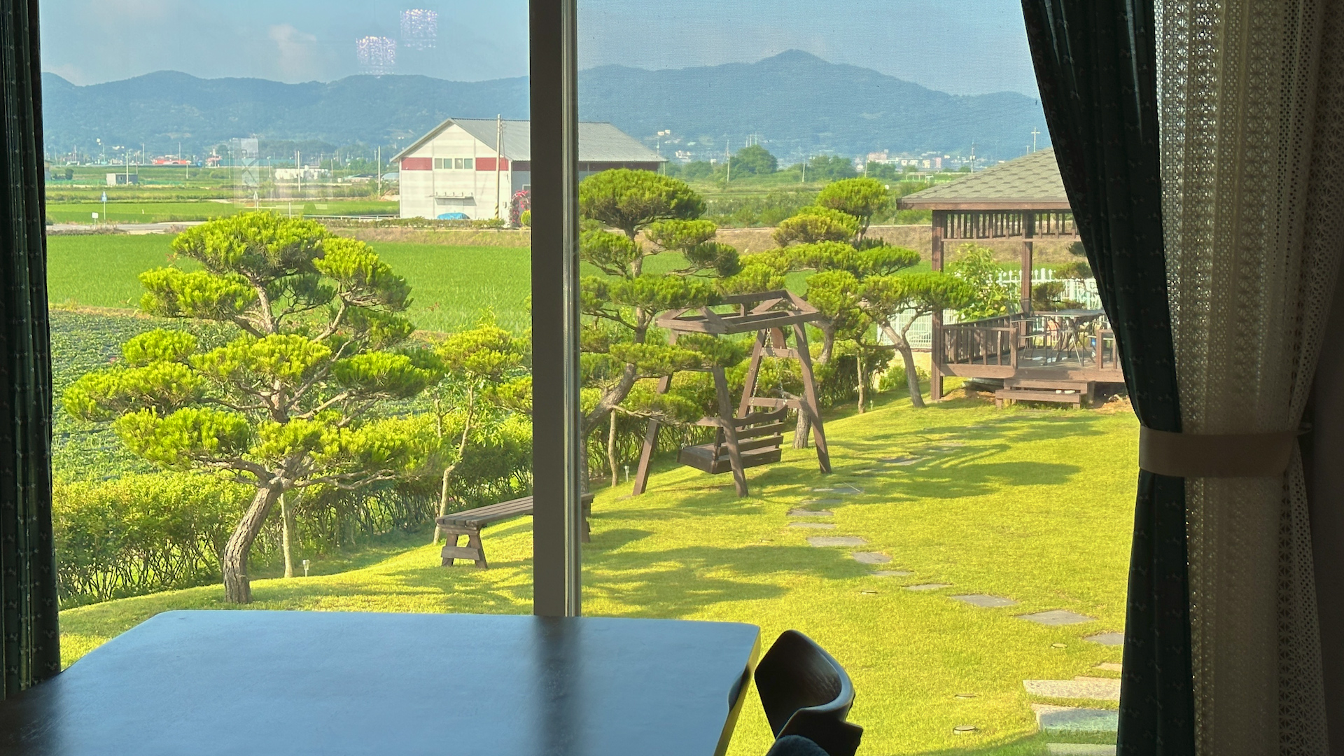 집에 있을 때는 주로 1층의 거실로 내려와 작업을 합니다. 옆에는 큰 창으로 보이는 푸른 정원 풍경이 있습니다. 또 1층에는 시원한 바람이 잘 불어와 진한 풀내음을 맡을 수도 있죠.